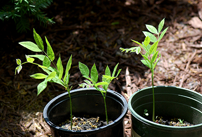 Now comes the patience part. Some say the tree is fast growing at first then it slows down; commentary perhaps from someone who never grew one. My tree has been in the ground six years now and it is six and one half feet high. It looked nice when it had those large compound Summer leaves but after leaf-fall it was just a stick, that is, until year six when I saw near the top of the stick a short stub. Finally a branch!