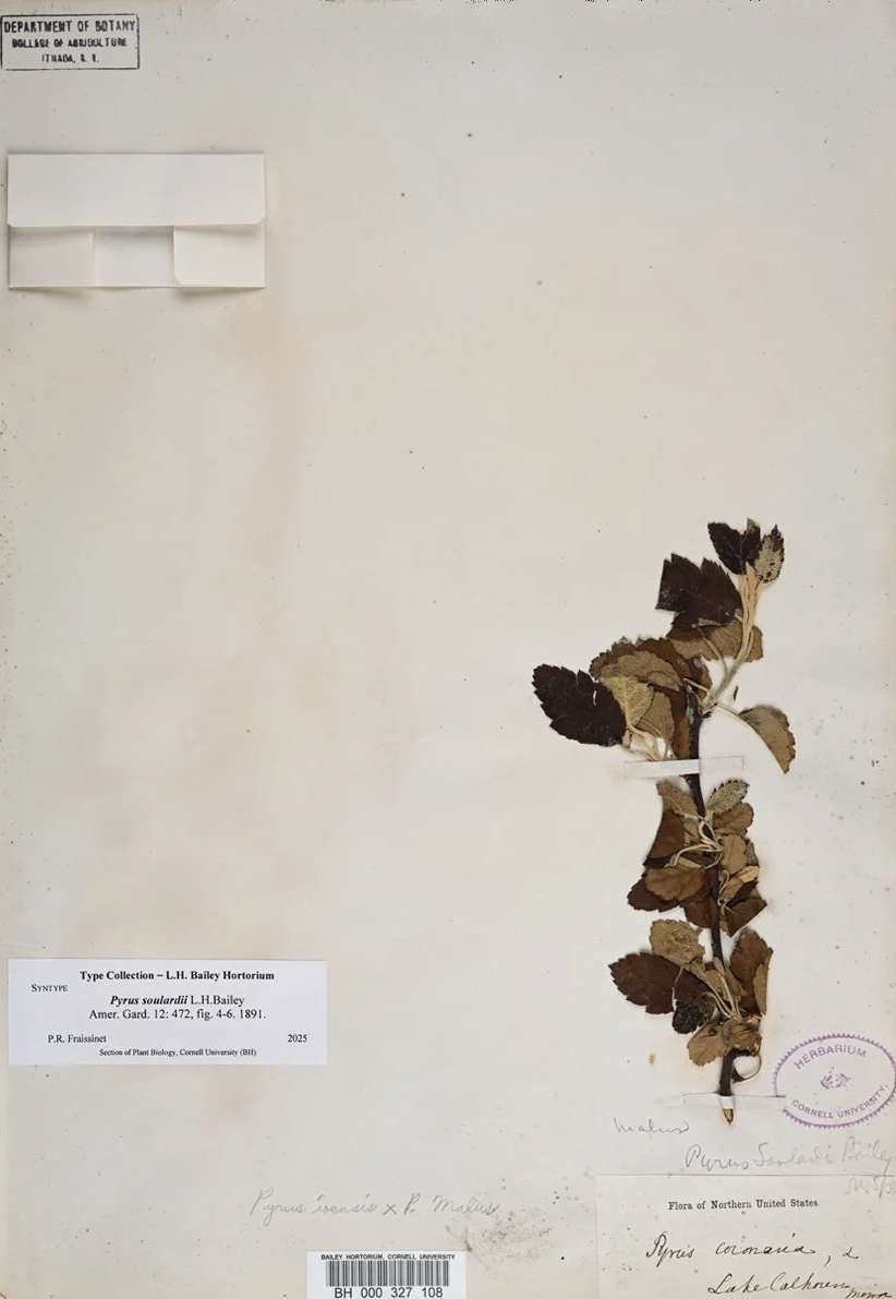 Of interest to us is Thoreau’s pursuit of crabapples, an obsession of his and he had not seen one close at hand until he reached Lake Calhoun where he “touched it and smelled it, and secured a lingering corymb of flowers for my herbarium.” The specimen he and Mann collected is known as Pyrus soulardi and resides in the herbarium of Cornell University. Thoreau’s journal contains these notes: