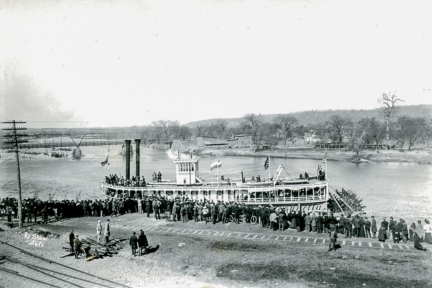 Below: The steamboat Henrietta at Mankato. One of several boats like the Franklin Steel, that plied the Minnesota River. Photo - Brown County Historical Society. [Larger image]