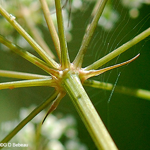 Below: Bulblet Water Hemlock produces small bulbils in the leaf joints of the upper part of the plant, which is a unique identifying feature. Many upper joints will have these.
