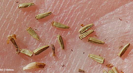 Below: The small ribbed 1 to 2 mm long cypselae.