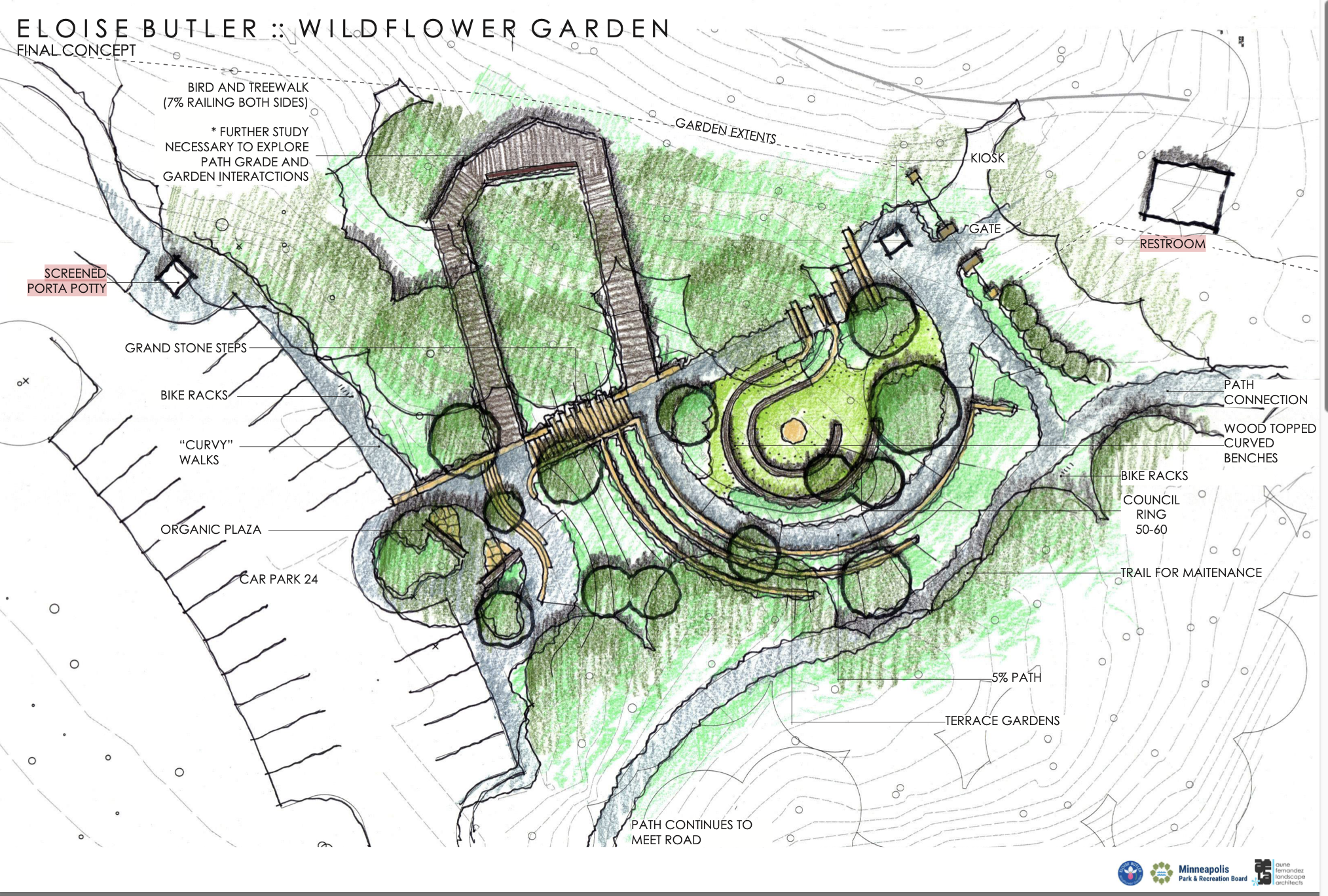 The Minneapolis Park and Recreation Board (MPRB) has finalized a design for a major renovation of the entrance approach to the Wildflower Garden.